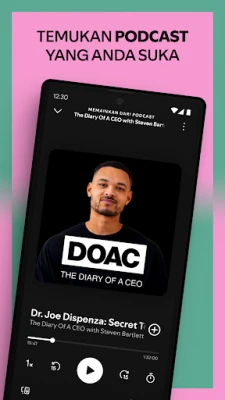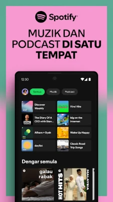 Melangkaui sempadan muzik, Spotify turut membawakan ribuan podcast yang memukau. Nikmati pelbagai kandungan audio, termasuk penerbitan asli yang eksklusif dan tidak akan anda temui di platform lain. Sama ada anda mencari hiburan, pendidikan atau berita terkini, perpustakaan podcast kami menyediakan pengisian yang sempurna. Pengalaman pendengaran anda direka untuk menjadi lancar merentasi pelbagai peranti, memastikan hiburan anda sentiasa bersama anda, di mana sahaja anda berada.