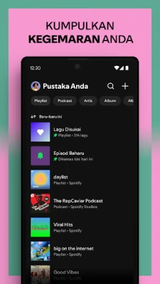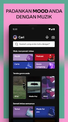 Mulakan perjalanan audio anda dengan Spotify, hab utama untuk penemuan muzik yang tiada tandingan. Selami dunia jutaan lagu dari setiap genre, cari artis kegemaran anda atau teroka album baharu dengan mudah. Bina pustaka muzik peribadi anda yang luas dan kongsi senarai main ciptaan anda dengan komuniti. Spotify sentiasa memastikan anda sentiasa berinspirasi, menawarkan cadangan yang disesuaikan khas untuk anda dan himpunan senarai main sedia ada untuk setiap suasana dan ketika.