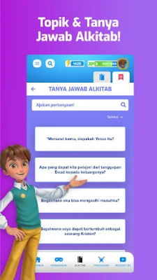 Aplikasi Alkitab Anak Superbook melangkaui sekadar cerita, menyajikan pelbagai permainan alkitabiah yang menyeronokkan untuk menguji pengetahuan dan ketangkasan. Anak-anak boleh mencuba 20 permainan mencabar, termasuk Teka Silang Kata Alkitab, Permainan Aksi, dan Trivia Alkitab yang merangsang pemikiran. Kandungan dinamik disepadukan terus ke dalam teks Alkitab, membolehkan interaksi mudah dengan setiap pasal. Dapatkan jawapan alkitabiah kepada soalan-soalan umum yang sering bermain di fikiran anak-anak mengenai kehidupan dan iman, serta meneroka profil lengkap tokoh, tempat, dan artifak penting.