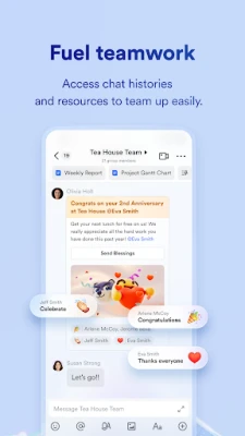 Di teras Lark terdapat Messenger yang canggih, membolehkan perbualan segera, sama ada sembang peribadi yang fokus atau perbincangan kumpulan yang bersemangat. Berdampingan dengannya adalah Docs, ruang kolaboratif anda di mana pasukan boleh bekerjasama dalam dokumen dan lembaran kerja secara masa nyata, memupuk inovasi bersama tanpa sempadan geografi. Susun hari anda dengan cekap menggunakan Kalendar kami; dari mana-mana jemputan mesyuarat, anda boleh dengan mudah melancarkan panggilan video, memulakan sembang kumpulan baharu, atau merangka memo mesyuarat penting. Selain itu, hubungkan pasukan anda serta-merta dengan hanya satu klik untuk panggilan audio atau video berkualiti tinggi.