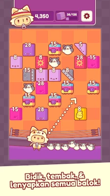 Mekanik permainan Piffle adalah intuitif namun memerlukan sentuhan strategik. Cukup leret atau halakan jari anda untuk membidik sasaran, pilih sudut yang paling tepat, dan kemudian lepaskan untuk melihat bola Piffle anda melantun dengan lincah. Hancurkan semua balok di laluan anda, cipta kombo yang memukau untuk mencapai skor tertinggi. Kumpul item istimewa dan gunakan kuasa tambahan untuk meningkatkan impak anda, menjadikan setiap pukulan terasa sangat memuaskan dan penuh hasil.