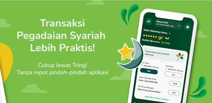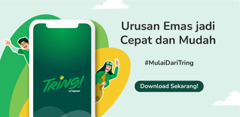 Lebih dari sekadar penyelesaian dana segera, Tring! juga membuka pintu pelaburan emas untuk semua. Mulakan perjalanan investasi anda dengan Cicil Emas Batangan 24K, di mana anda boleh memilih denominasi serendah 0.5 gram sehingga 25 gram dengan wang muka hanya 15% dan tenor ansuran sehingga 36 bulan. Atau manfaatkan Tabungan Emas yang menawarkan kemudahan membeli, menjual, memindahkan, dan mencetak emas secara praktikal. Dengan modal serendah Rp10.000, anda boleh membina simpanan masa depan, malah menggunakan emas tabungan anda sebagai cagaran melalui Gadai Tabungan Emas untuk keperluan mendesak, dengan sewa modal hanya 0.75% per 15 hari.