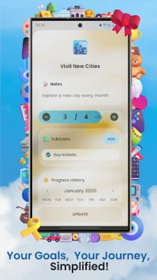 Bayangkan memiliki bukan sekadar aplikasi, tetapi seorang pendorong semangat peribadi, penganjur kehidupan, dan arkitek impian anda. Yearvana menggabungkan semua ini menjadi satu platform yang lancar. Ia memudahkan anda menyusun aspirasi dan tanggungjawab harian dalam satu ruang yang tersusun indah, menghapuskan kekeliruan dan membawa fokus yang jelas ke arah visi masa depan anda. Dengan Yearvana, penetapan matlamat menjadi pengalaman yang memberi inspirasi, di mana anda dibimbing untuk menetapkan objektif yang jelas dan boleh diukur untuk setiap segmen hidup anda. Dari peningkatan kecergasan hingga kemajuan profesional atau percutian idaman, ia membekalkan dorongan positif harian, petikan motivasi, dan pengesan kemajuan interaktif untuk meraikan setiap kejayaan kecil anda.